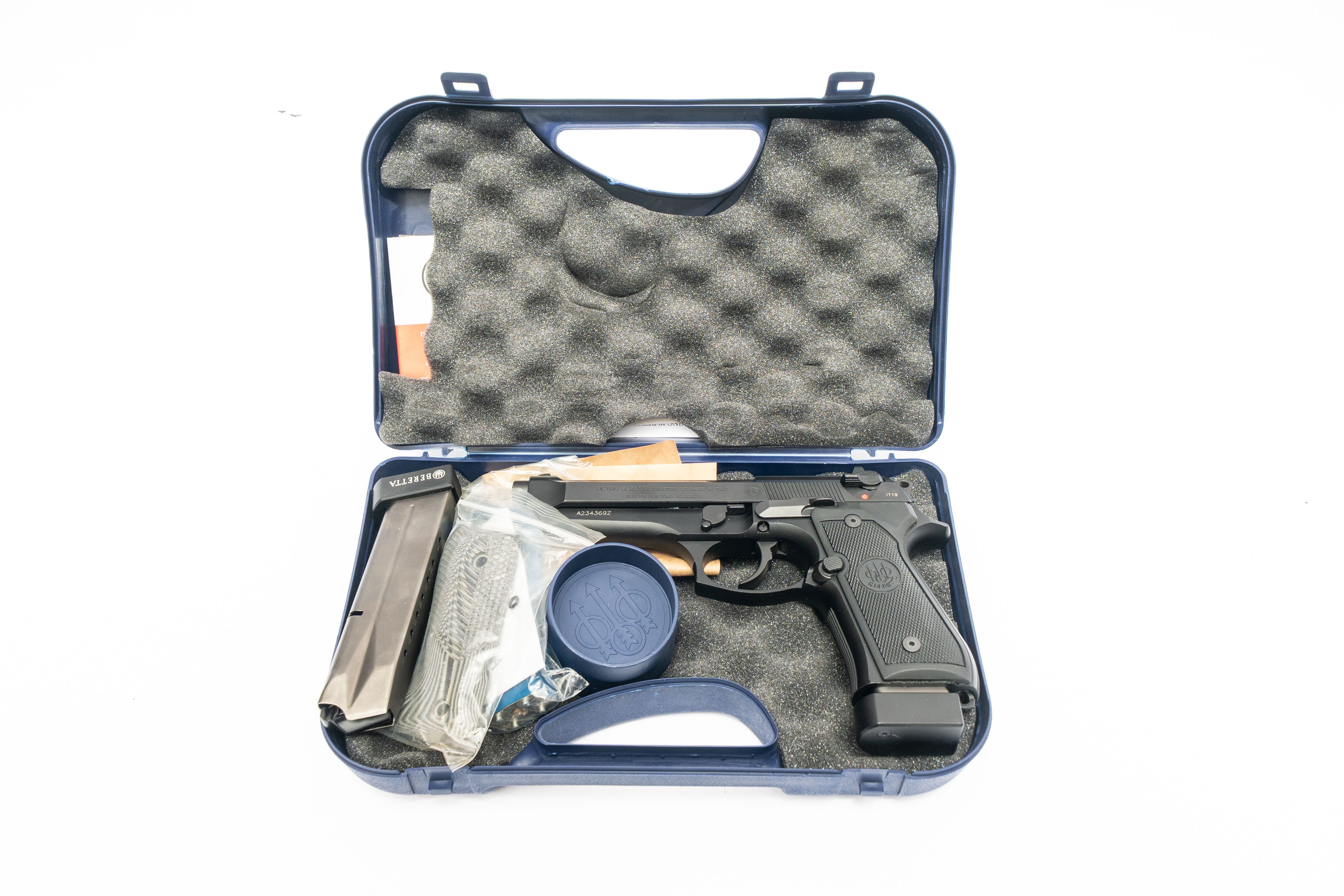 8 Pietro Beretta Model 92FS 9mm Para, 2 Mags, Extra Stippled Grips, Orig. Hard Case, Like New Condition, A234369Z