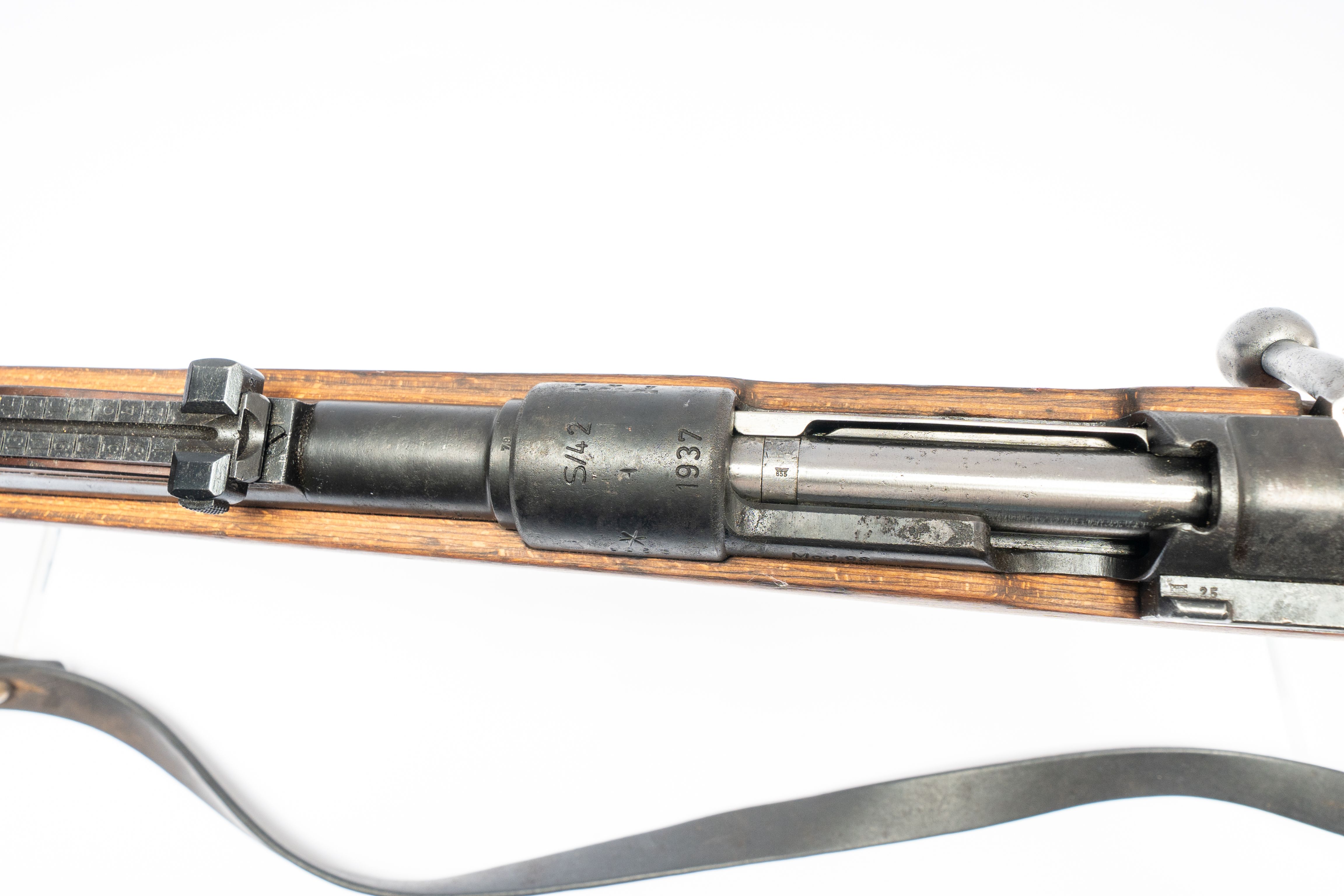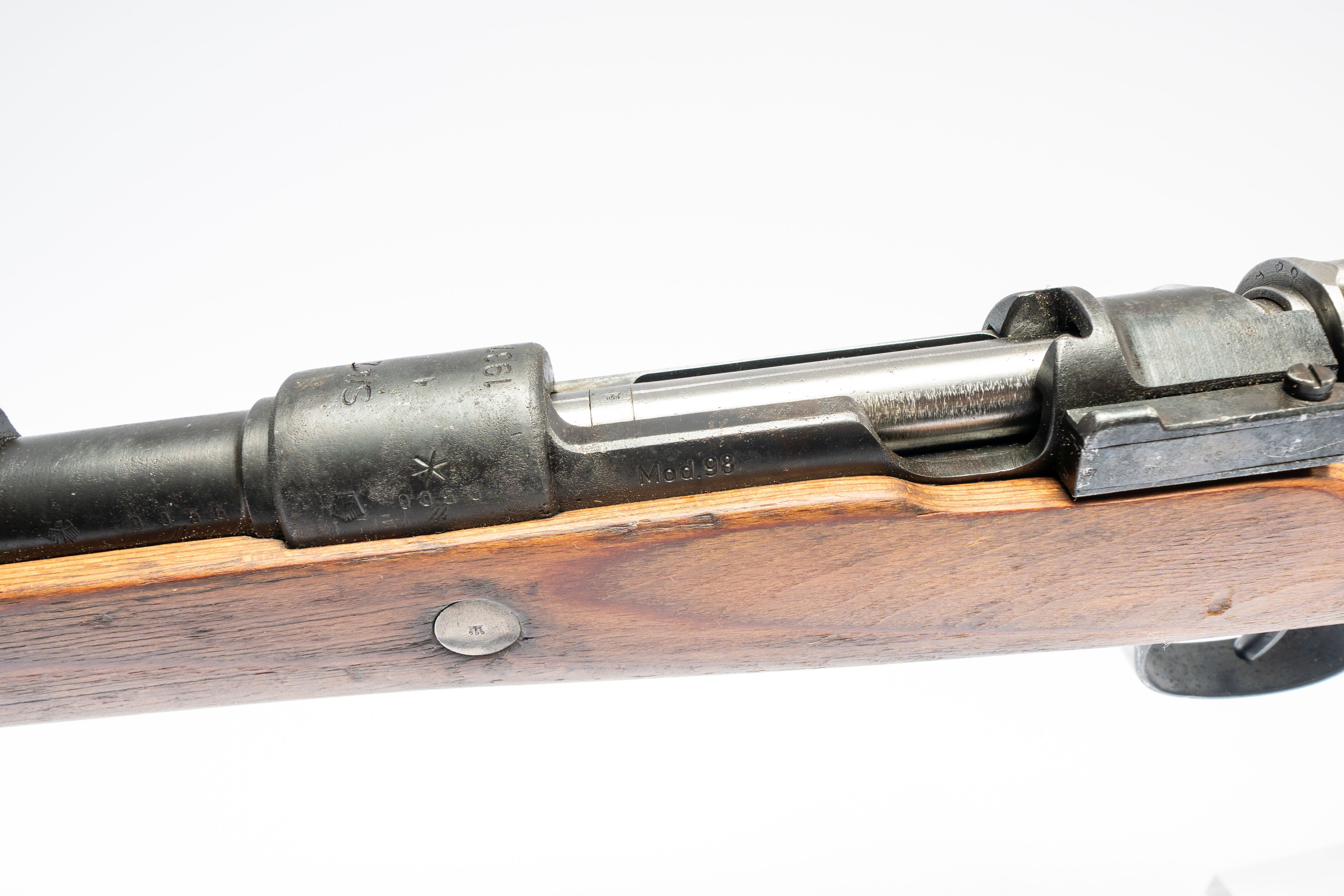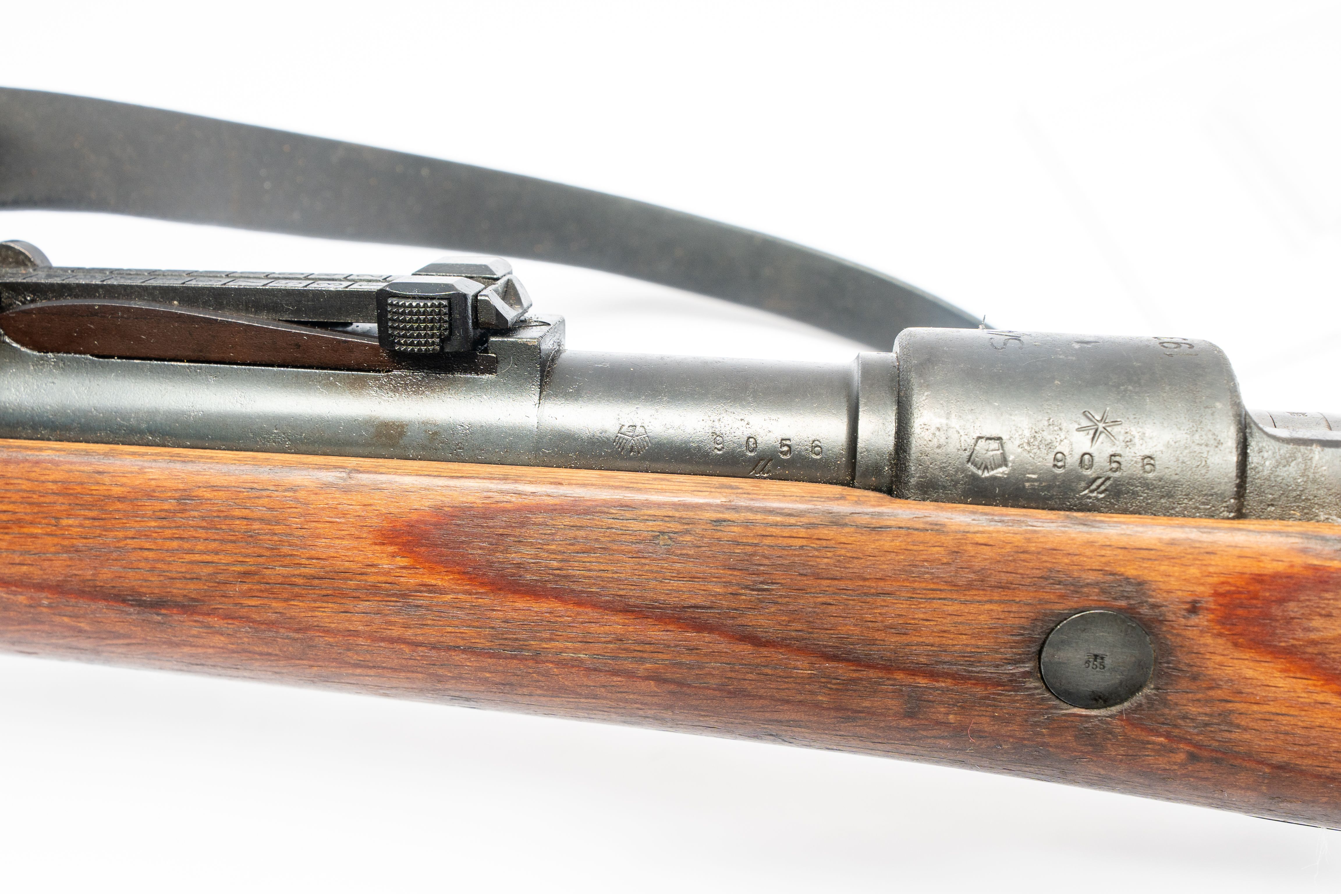23 1937 Model 98 German Mauser, 3 Military Proof Waffenamt Stamps on Right Side, S/42 on Top Action, Barrel, Action, Receiver Have Matching 9056 Serial Number