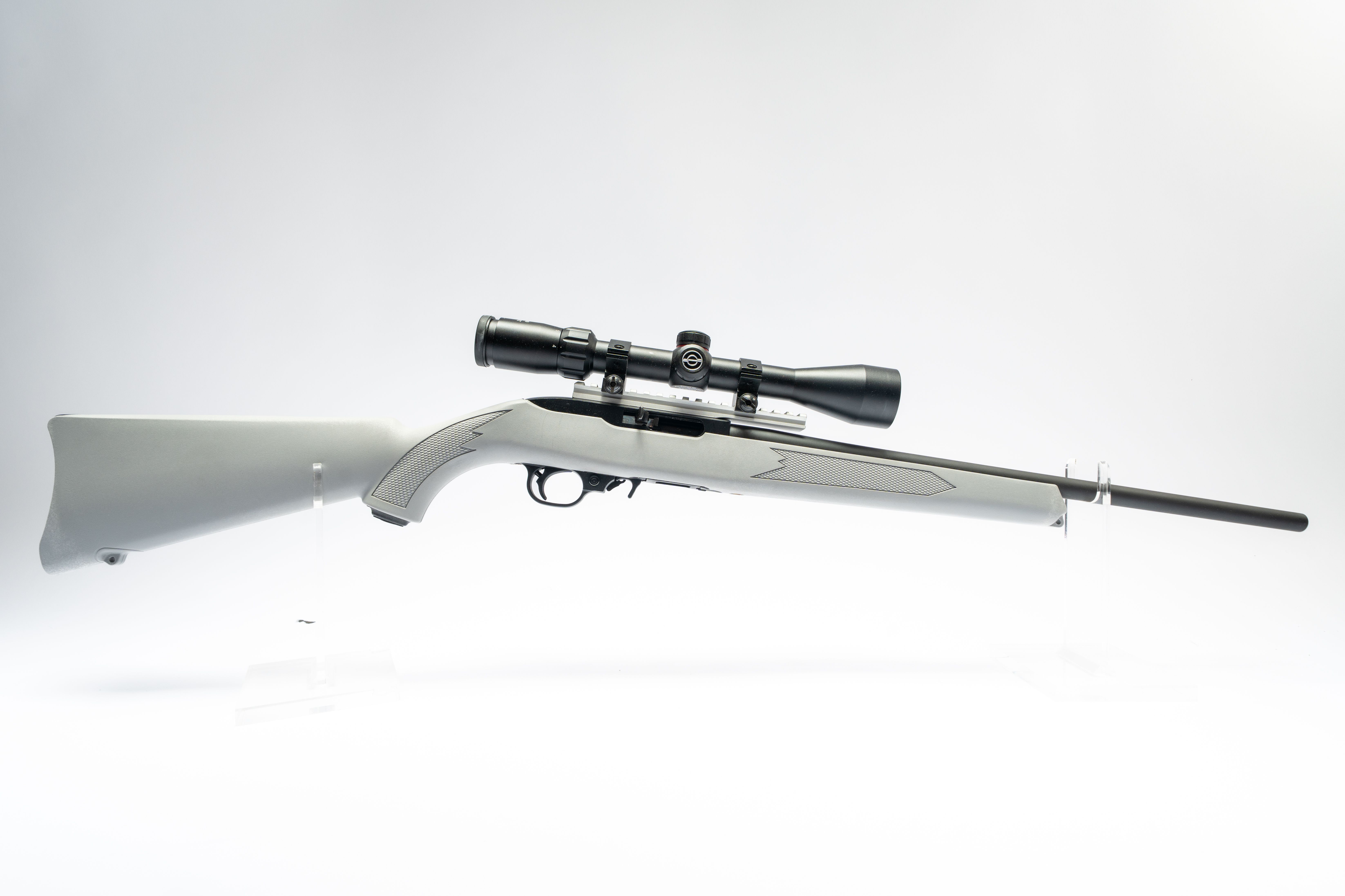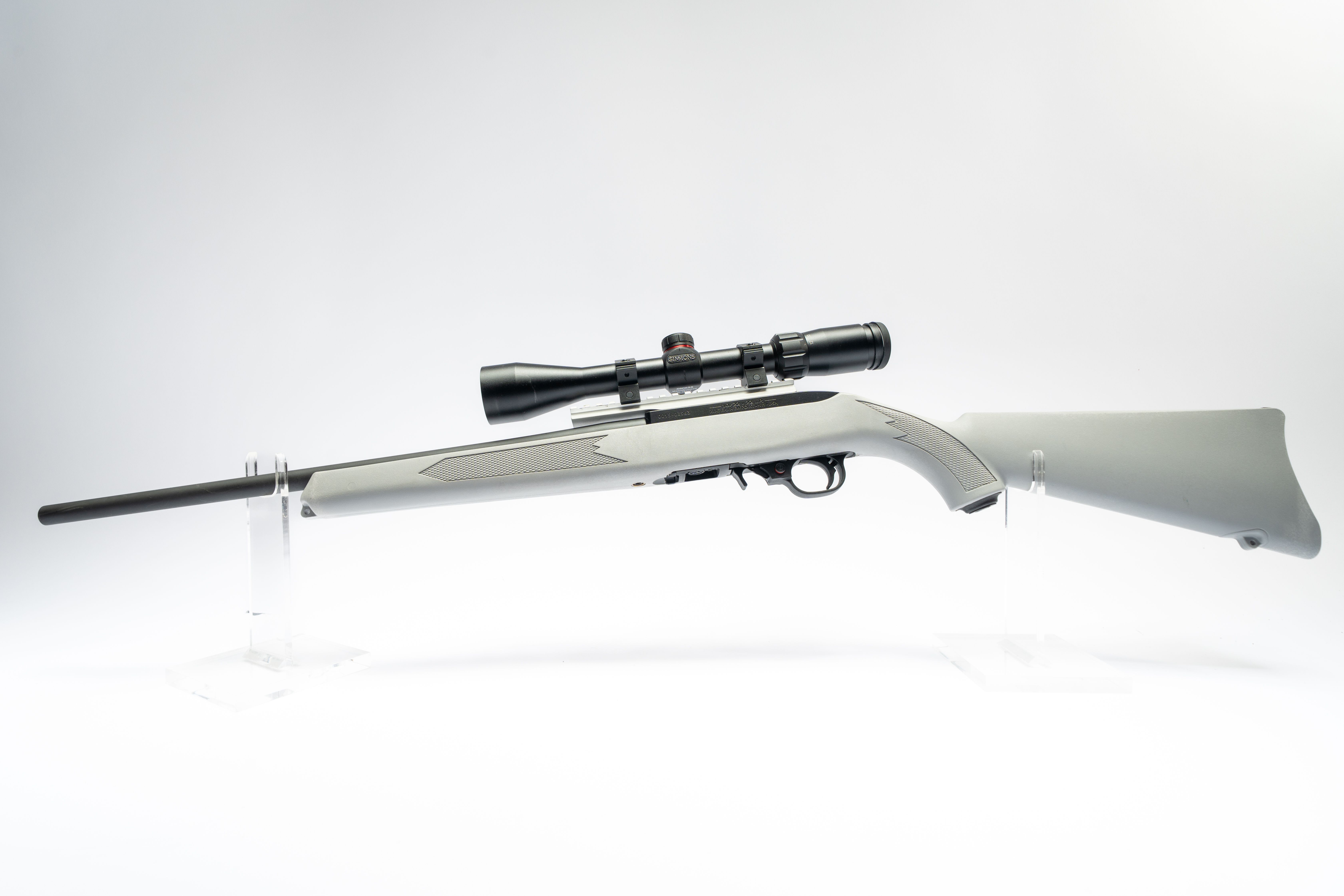 27 Ruger 10/22 22LR Excellent Condition, Gray Hard Composite Stock, 1 Mag, Simmons 4-12x40 Scope SN 0015-03963